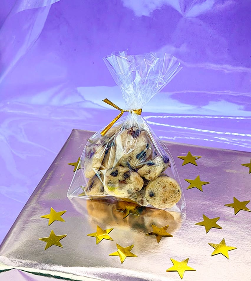 Cookies recién horneadas, su caducidad es de 30 días desde la recepción del pedido, las puedes congelar por 3 meses en su bolsita.