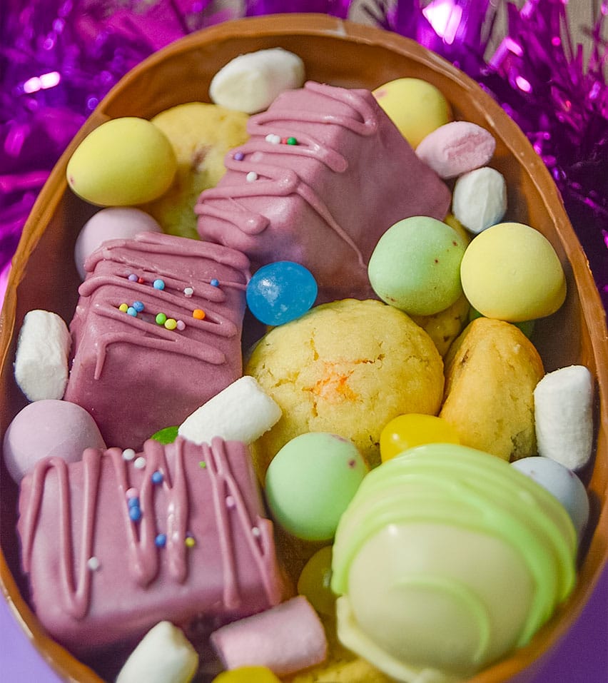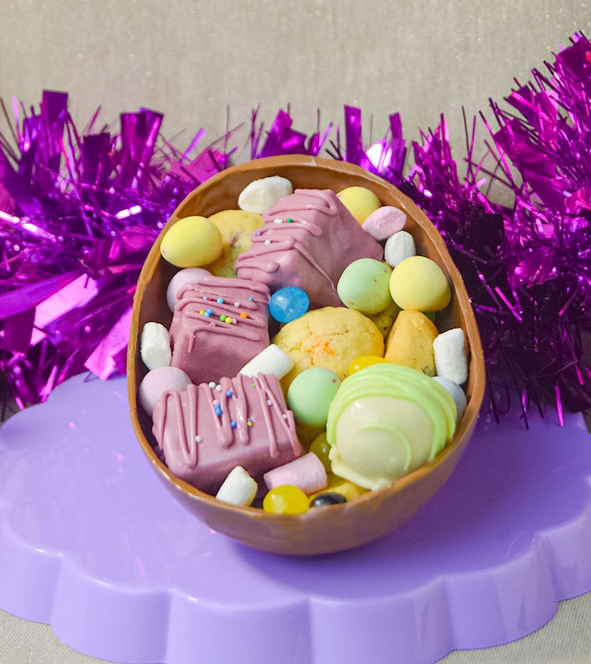 Pascua es esa época del año en la que todo se llena de color y el chocolate se convierte en el gran protagonista. Pero en Tartas Bastante Majas hemos querido ir un paso más allá y darle nuestro propio toque. Por eso hemos creado este huevo relleno de dulces artesanos, perfecto para regalar porque no va en la nevera, para irlo disfrutando cuando quieras (te durará poco jeje).
