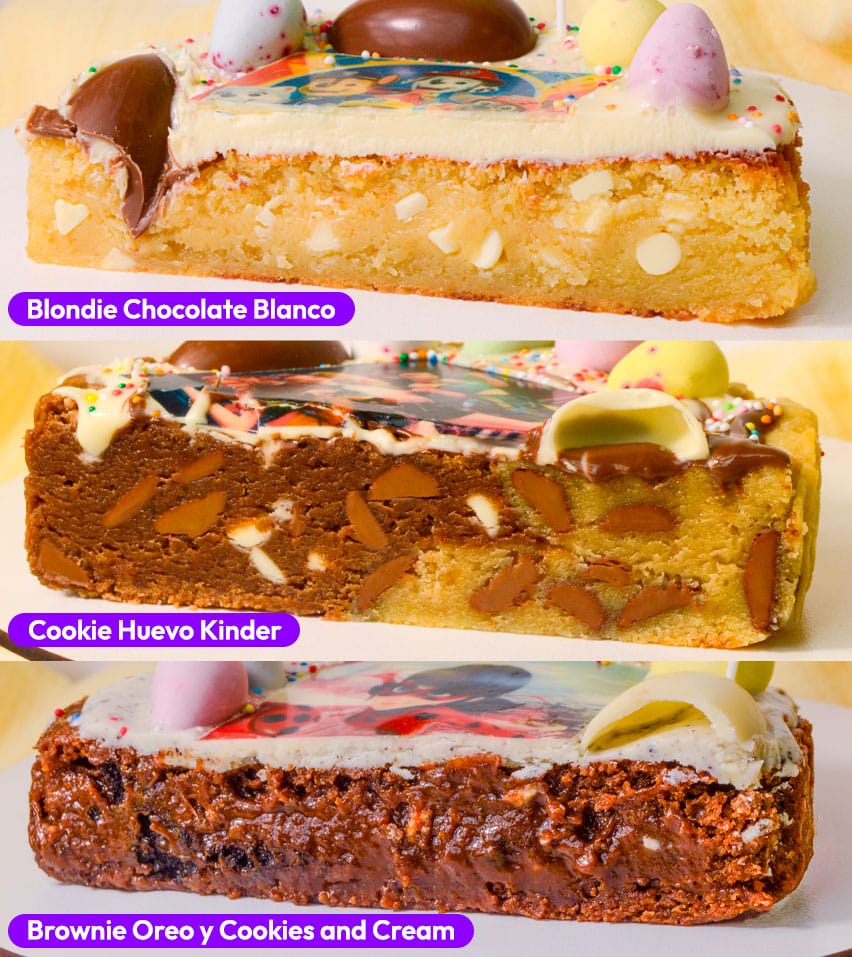 💚 Cookie Huevo Kinder: Cookie crujiente por fuera y blandita por dentro, con mitad chocolate blanco y mitad chocolate con leche, inspirado en la clásica chocolatina. Te costará compartirla.