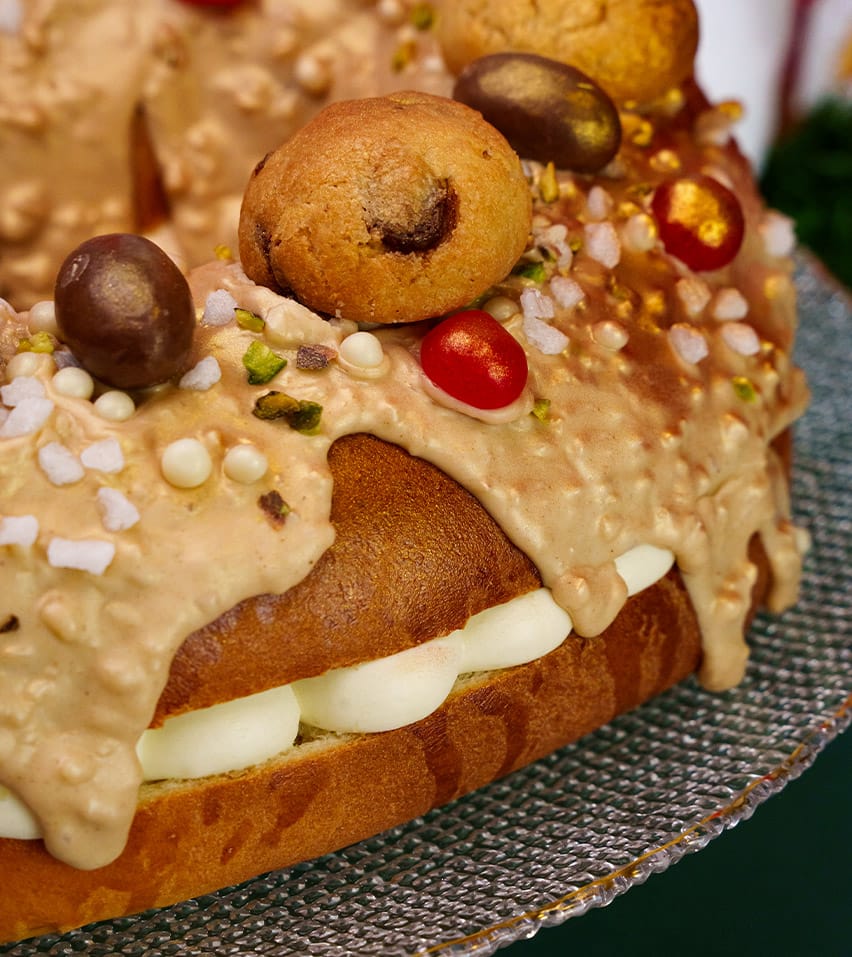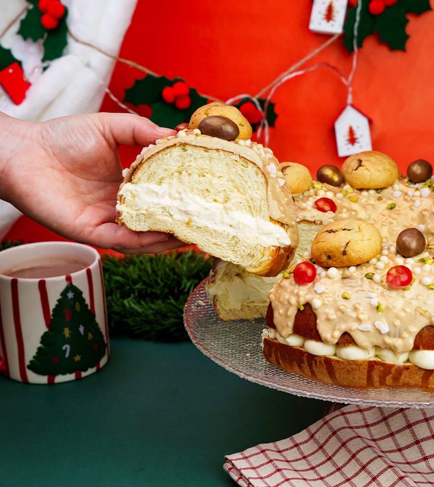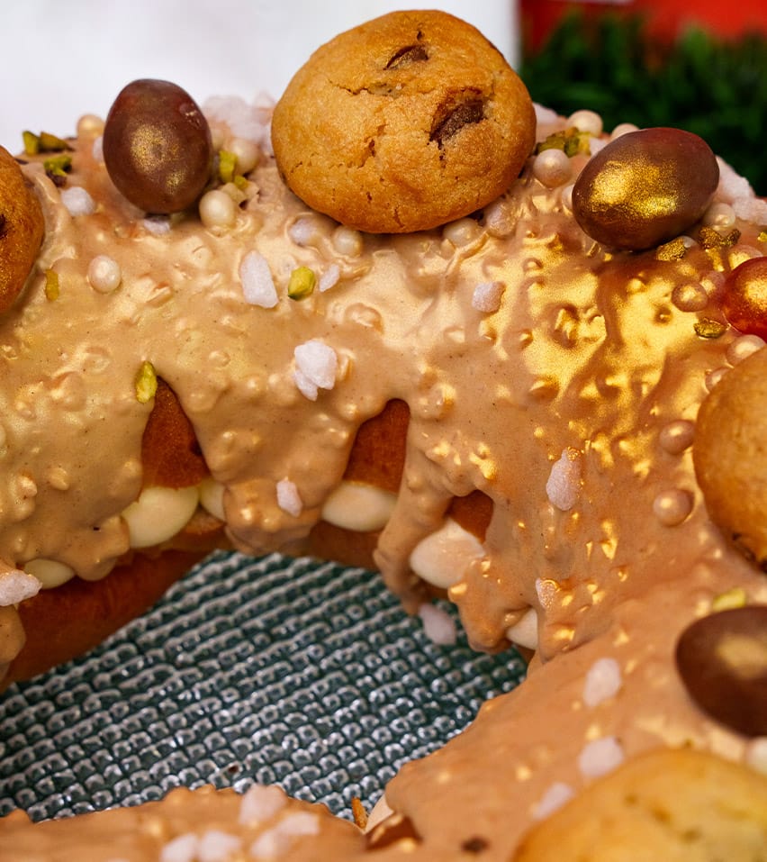Lo coronamos con Chocobons, mini cookies y azúcar perlado, que le da un toque crujiente y muy top. Un Roscón de Reyes diferente, original y brutalmente rico, perfecto para sorprender en la mesa y disfrutar como se merece este día.